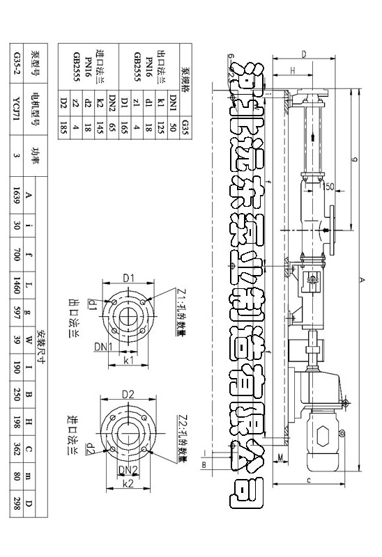 G35-1V單螺桿泵配YCJ71-3KW減速機安裝尺寸圖