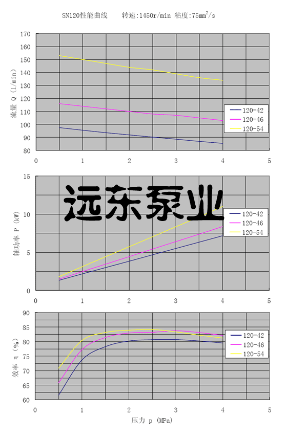 SN120三螺桿泵(SNH120三螺桿泵,SNS120三螺桿泵)轉速1450曲線圖