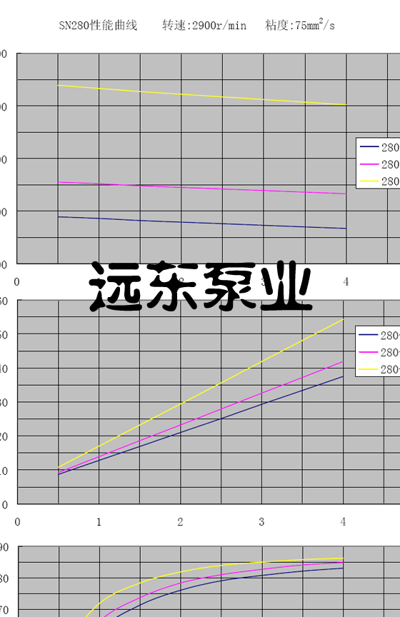 SN280三螺桿泵(SNH280三螺桿泵,SNF280三螺桿泵,SNS280三螺桿泵)轉(zhuǎn)速2900性能曲線圖